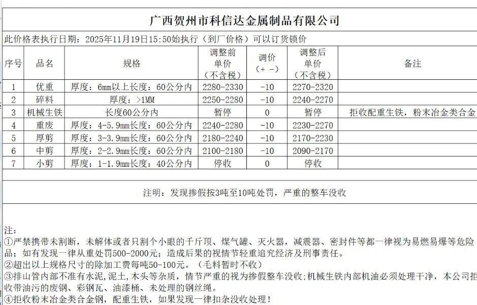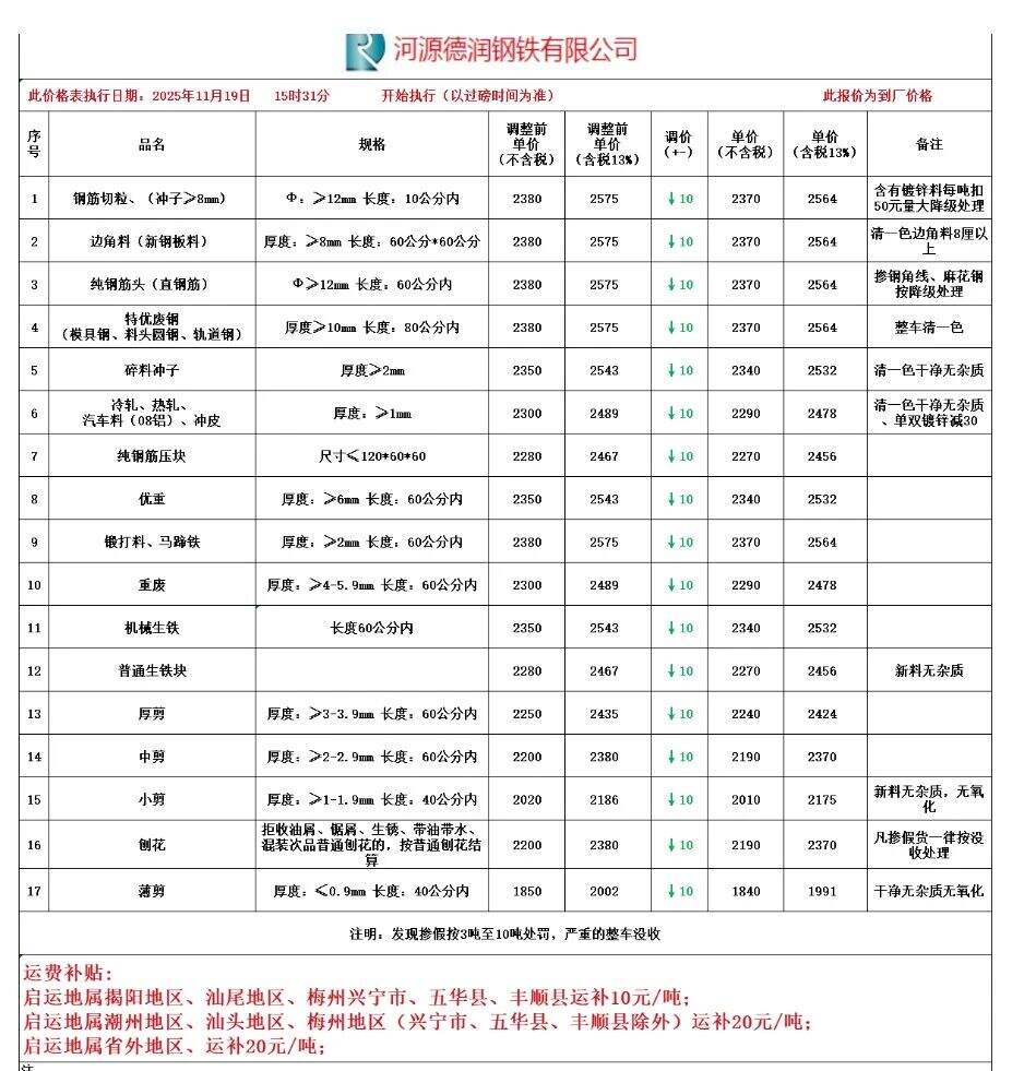 **日廣東揭陽國鑫廢鋼價格調整跌**: