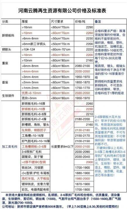 **月**日河南云騰再生資源有限公司部分下調(diào)