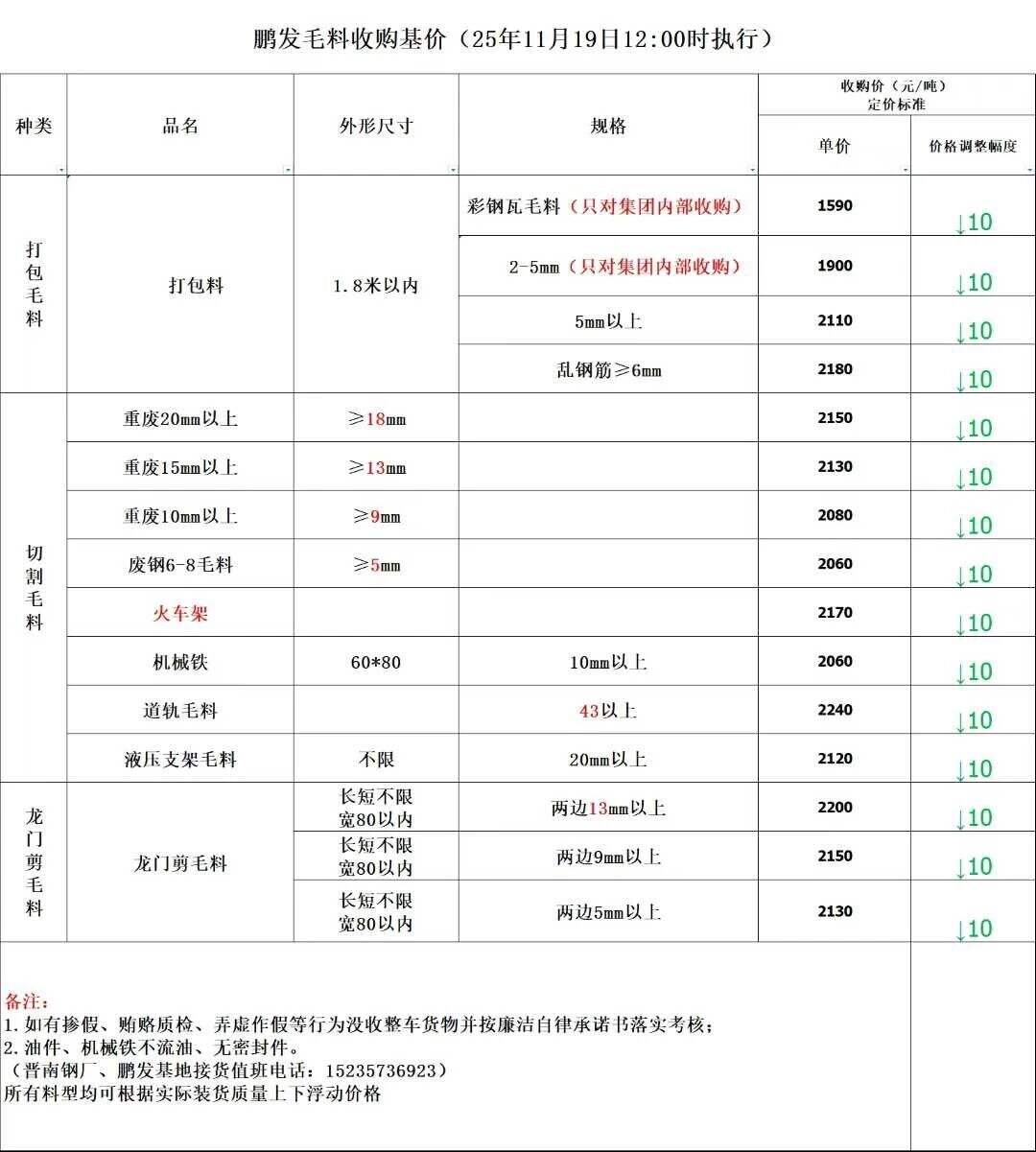 **月**日山西晉南鵬發(fā)毛料收購基價