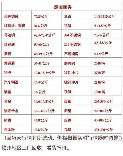 ****年**月**日福州凱隆晟再生資源廢銅鋁報價