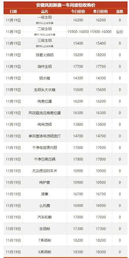 **月**日安徽鳳陽新鑫一車間廢鋁收購價
