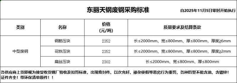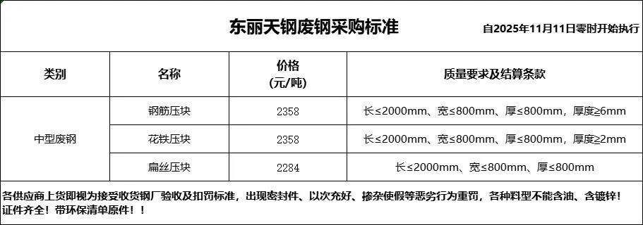 東麗天鋼通知:鋼筋壓塊、花鐵壓塊恢復收貨!