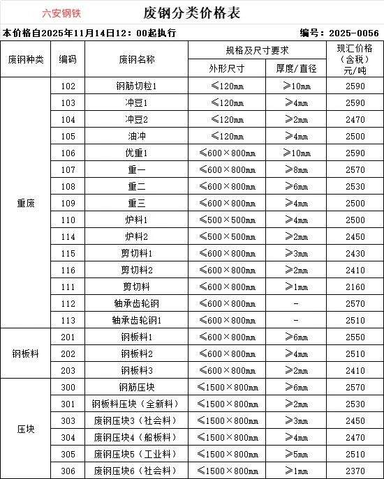 **日六安鋼鐵廢鋼跌**-**:鋼筋切粒****,沖豆一****,沖豆二****,油沖****,優重一****,重廢一****重廢二****,重廢三****,爐料一****軸承齒輪鋼****鋼板料一****,鋼板料二****,鋼板料三****,鋼筋壓塊****,含稅價。