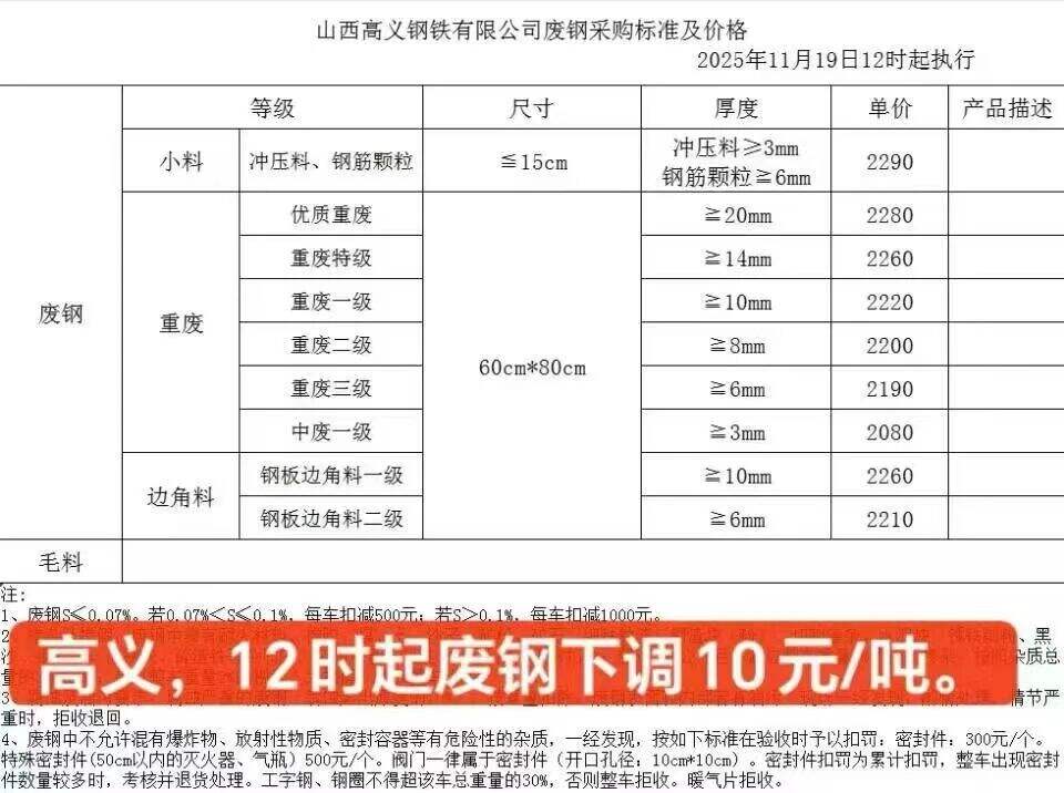 **日山西美錦鋼廠廢鋼采購(gòu)價(jià)跌**: