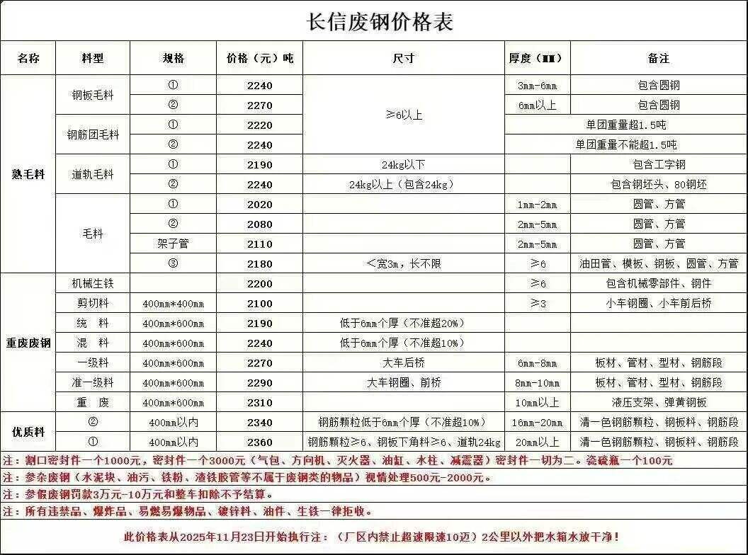 長(zhǎng)信廢鋼通知:從****年**月**號(hào)*時(shí)廢鋼統(tǒng)一下調(diào)**元/噸,廢鋼車輛下午五點(diǎn)半之前進(jìn)廠,兩公里外必須把水箱水放干凈。