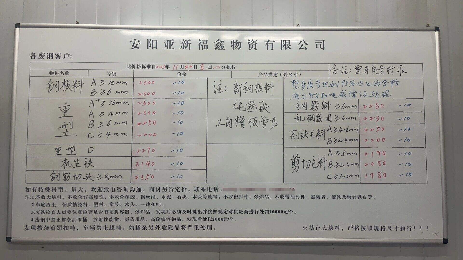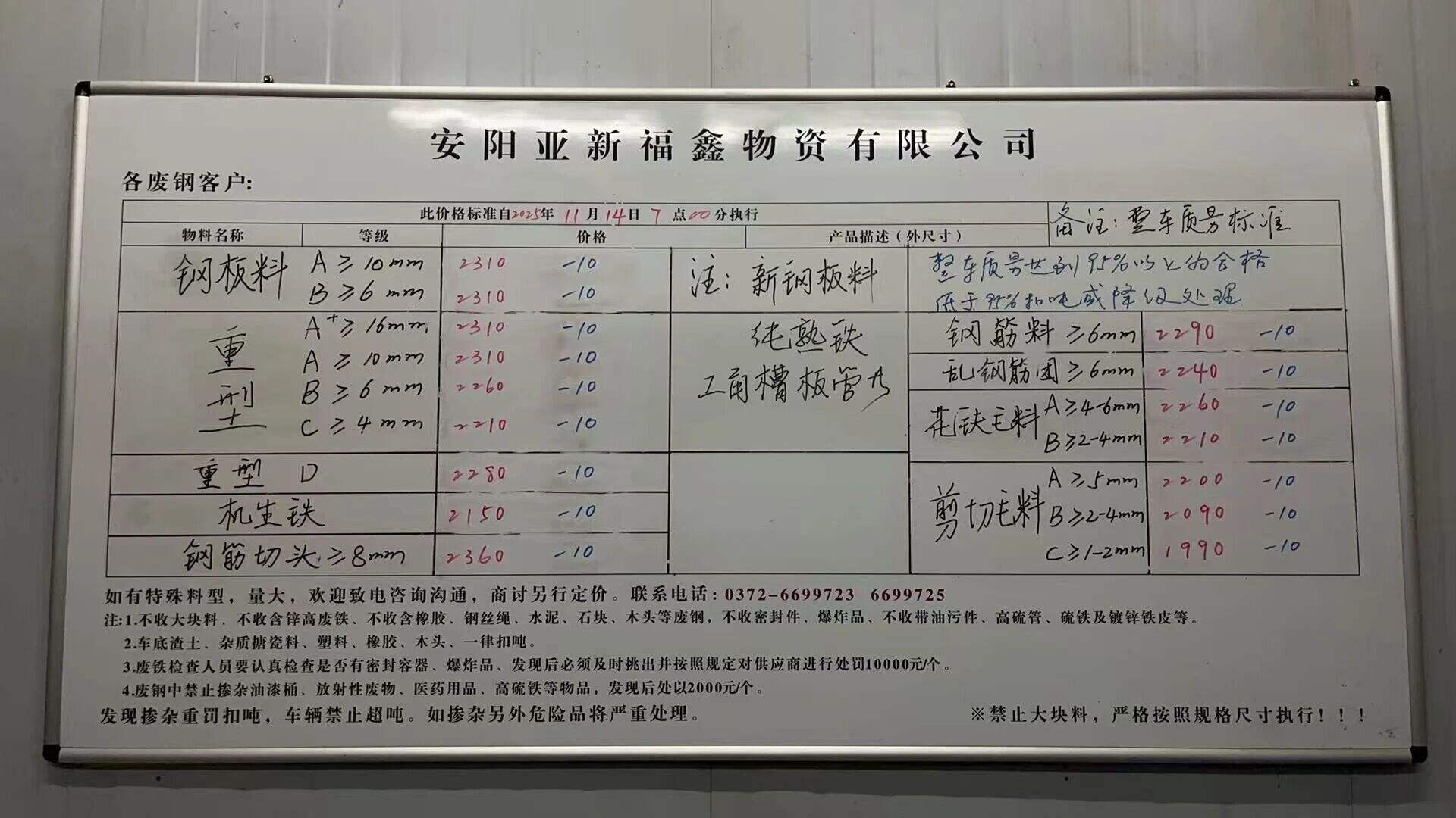 *日安陽亞新廢鋼跌**:鋼板**厚以上****,*厚以上****,特級**厚以上****,重A**厚以上****,重B*厚以上****,重型D****,機生鐵****,鋼筋切頭****,鋼筋料****,亂鋼筋團****,剪切毛料*厚****,剪切毛料*-*厚****,*-*厚****。
