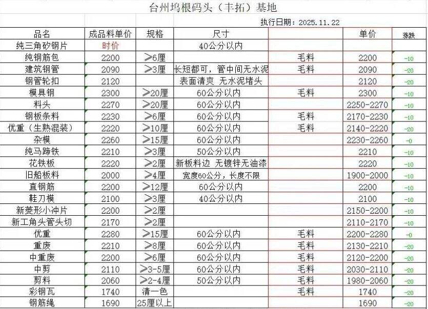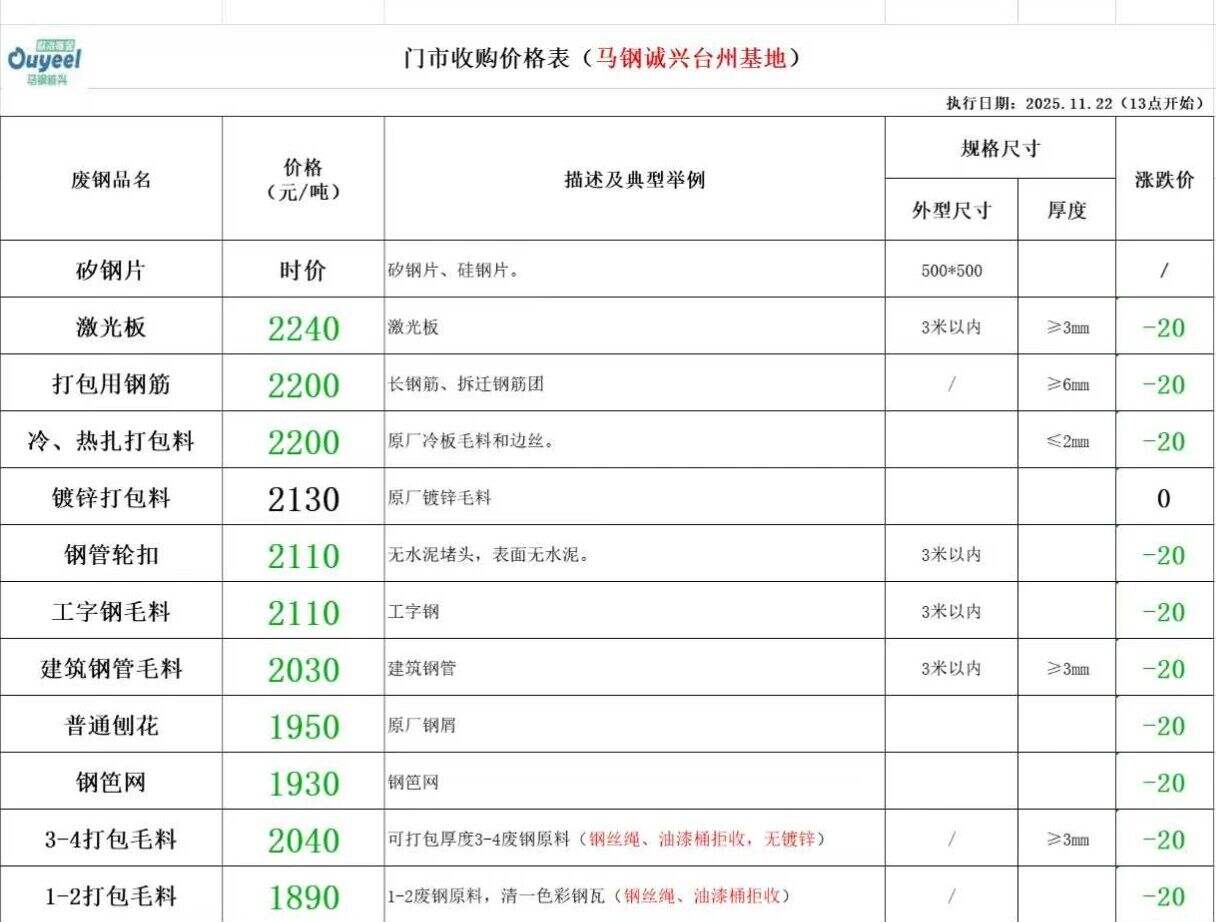 **日中午浙江寧波興鋼廢鋼價格跌**