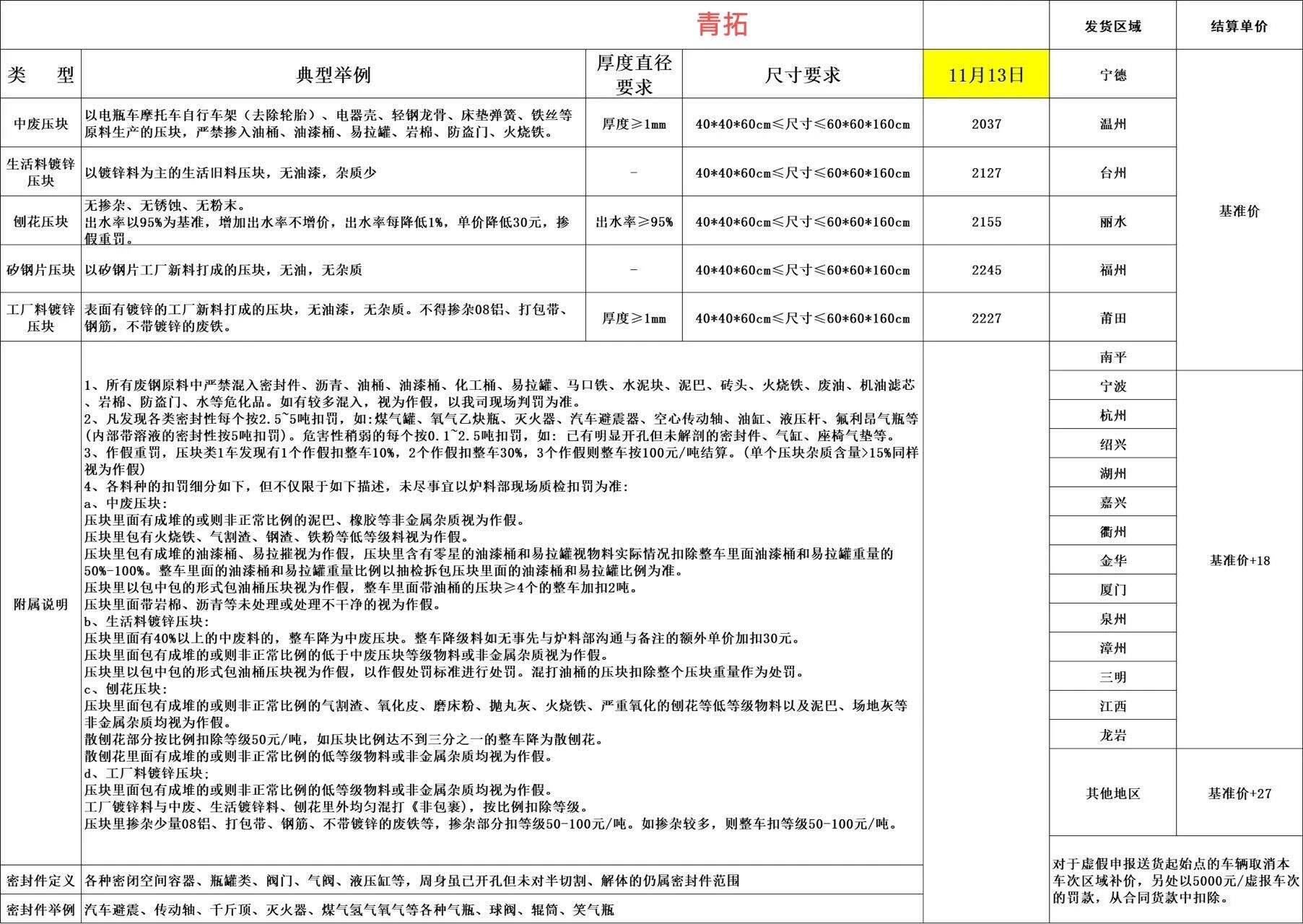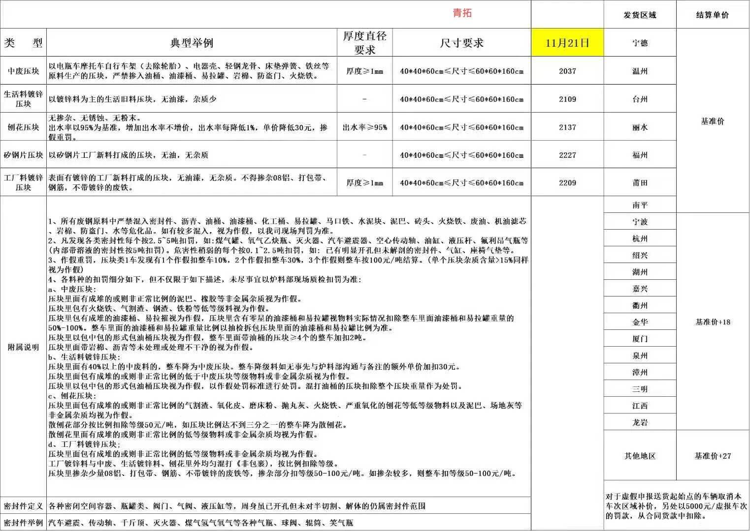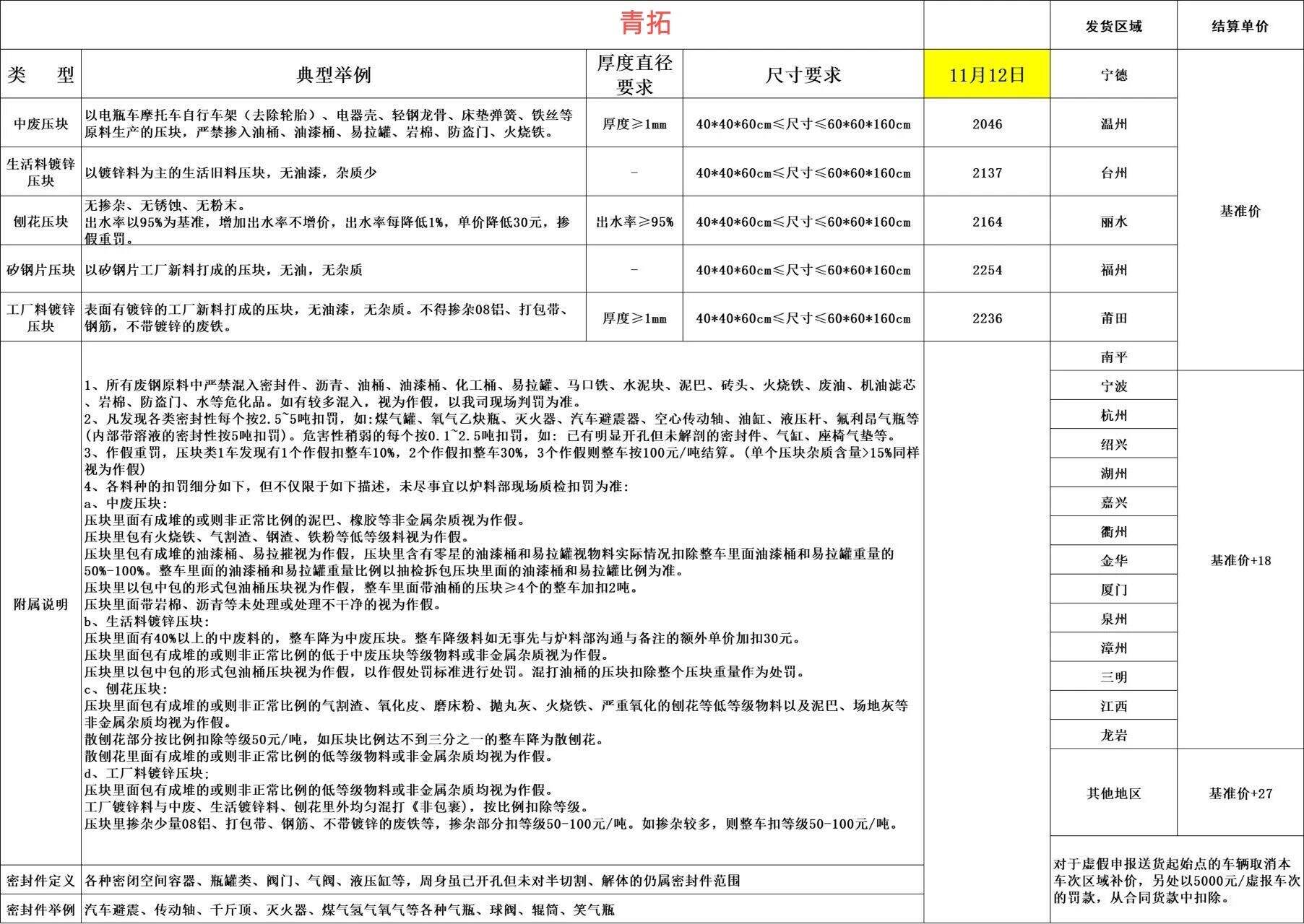 青拓通知:****年**月**日所有料型跌**,具體以價目表為準。