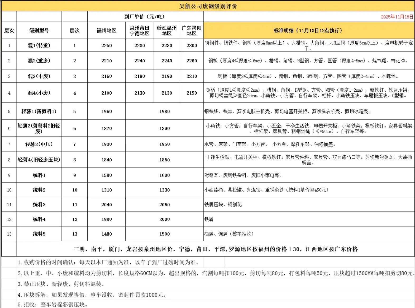 福建順昌宏豐通知:廢鋼刨花破碎料等所有品種統一下調**元/噸,現在起執行。