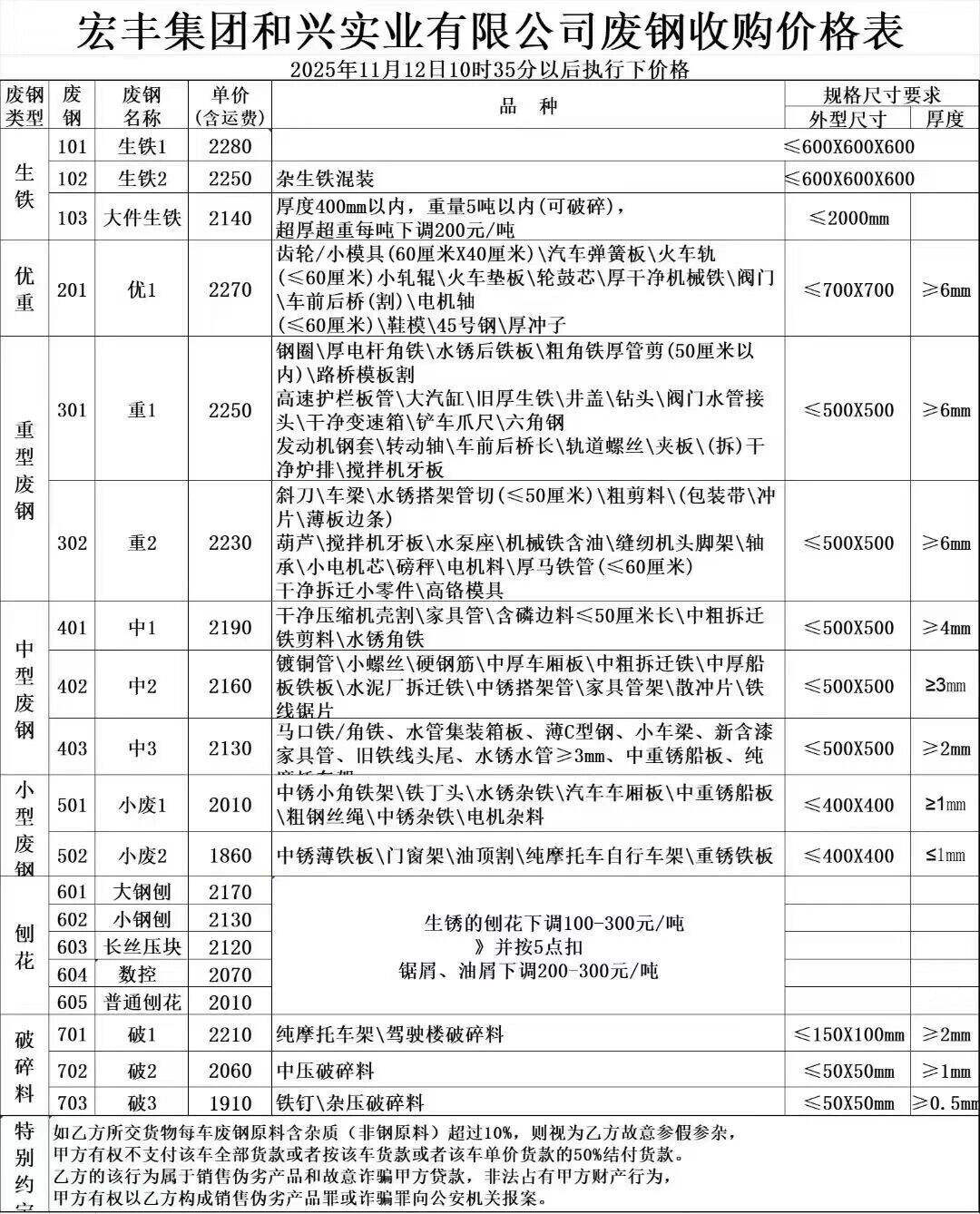 順昌宏豐通知:廢鋼刨花破碎料等所有品種統一上調**元/噸,現在起執行。