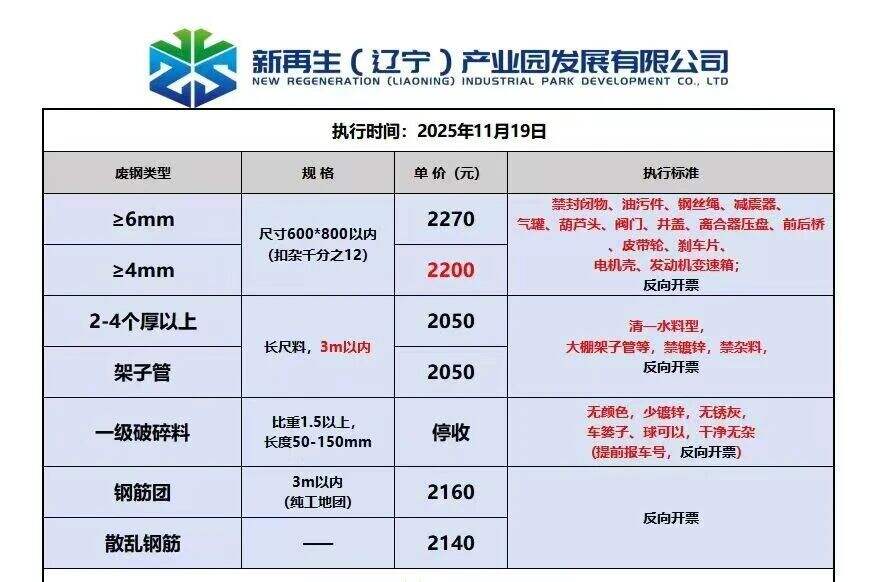 **月**日遼寧海創豐程再生資源有限公司報價: