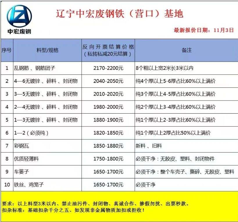 **月*日遼寧中宏廢鋼鐵(營口)基地報價
